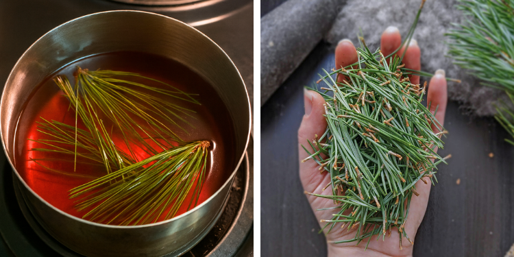 - Boil a pot of pine needles for 30 minutes.