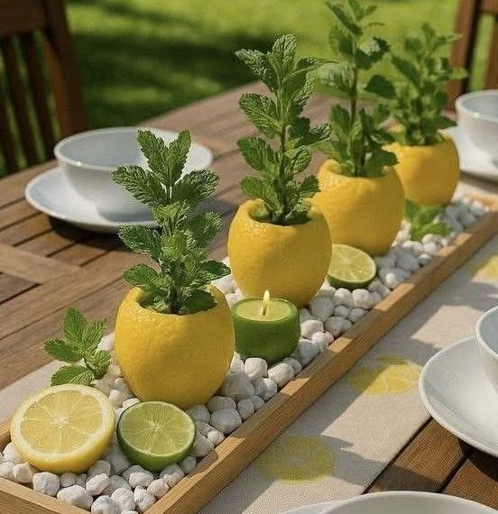 To add a little extra flair, attach your centerpiece with a wooden board and raise it slightly off the table. Your kitchen may have something similar, go for it and you’ll be amazed at how many of your useful items may serve several purposes.