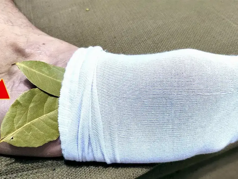 Bay leaves contain powerful anti-inflammatory agents like eugenol and tannins. These compounds are absorbed slowly through the skin when held close to the foot for hours.