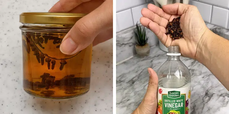 - Mix 1 teaspoon of clove vinegar in a glass of warm water.