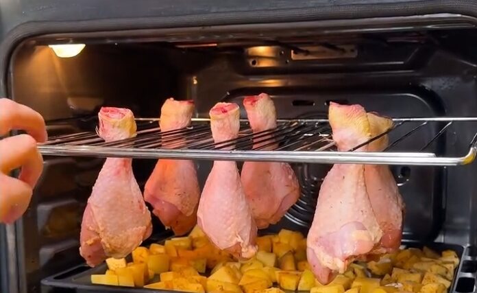 🍗 Oven-Baked Hanging Chicken Thighs With Baked Potatoes Easy Family One-Pan Dinner Recipe This recipe …