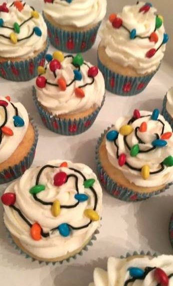 - Use black gel/frosting to draw a loopy line across the cupcake — like a string of Christmas lights.