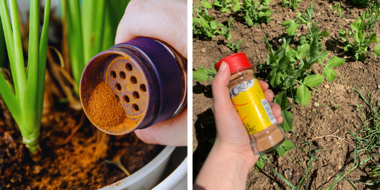 - Soil barrier: Sprinkle a ring of cinnamon around the base of plants to deter crawling pests.