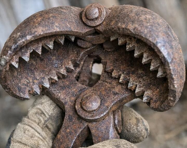 In the quiet corners of old barns, treasures often lie hidden, waiting to be rediscovered. These relics of the past, while often covered in dust and rust, hold stories of the bygone days when they were essential tools for daily life. One such find, discovered during a routine barn cleanup, presents itself as a perplexing piece of history: a heavy iron tool with a hinge and jagged teeth along its inner curve.