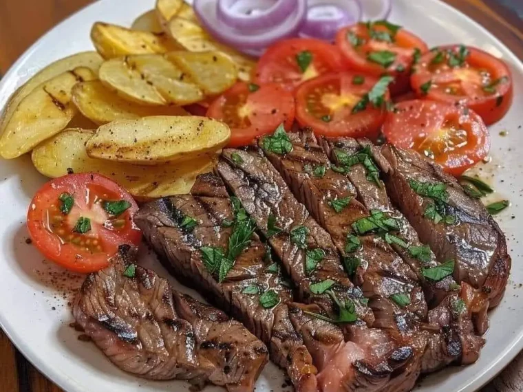 If you’re craving a classic, hearty meal thatโs easy to prepare and full of flavor, this recipe for Grilled Steak with Tomato and Onion Salad and Homemade French Fries is just what you need. Perfect for a satisfying dinner, this combination of tender grilled steak, refreshing tomato salad, and crispy homemade fries will delight everyone at the table. With a few simple ingredients and minimal prep, this meal delivers rich taste without fuss.