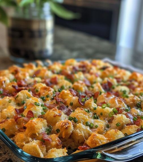 Cracked Out Chicken Tater Tot Casserole is a delicious, comforting dish that’s perfect for family dinners or potlucks with friends. Combining the classic flavors of chicken, bacon, and cheese with the kid-approved crunch of tater tots, this casserole is a big hit in our house. It’s an easy meal to throw together, but it feels special enough for any occasion. Plus, it’s a great way to use up leftover cooked chicken!