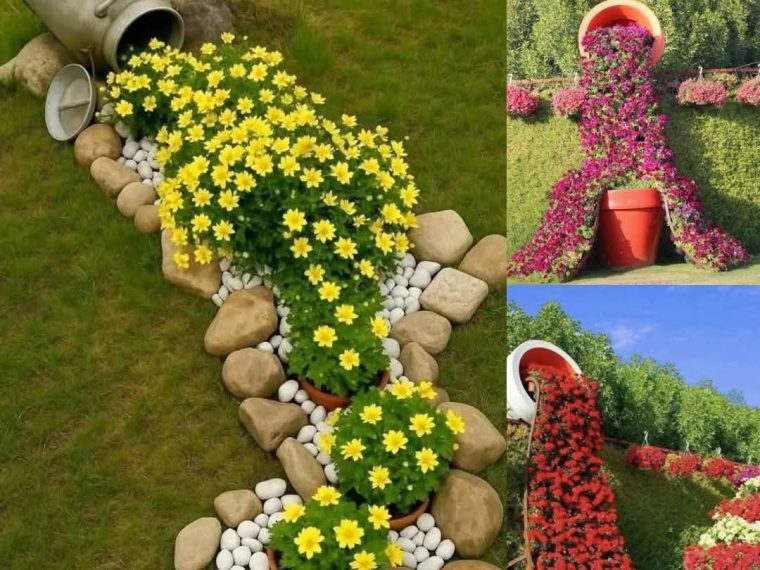 In Landscaping and garden design, creating a focal point is important, it makes your garden more lively. For this, spilled flower pot is a gorgeous idea. You can create an astonishing waterfall like appearance from flowers.