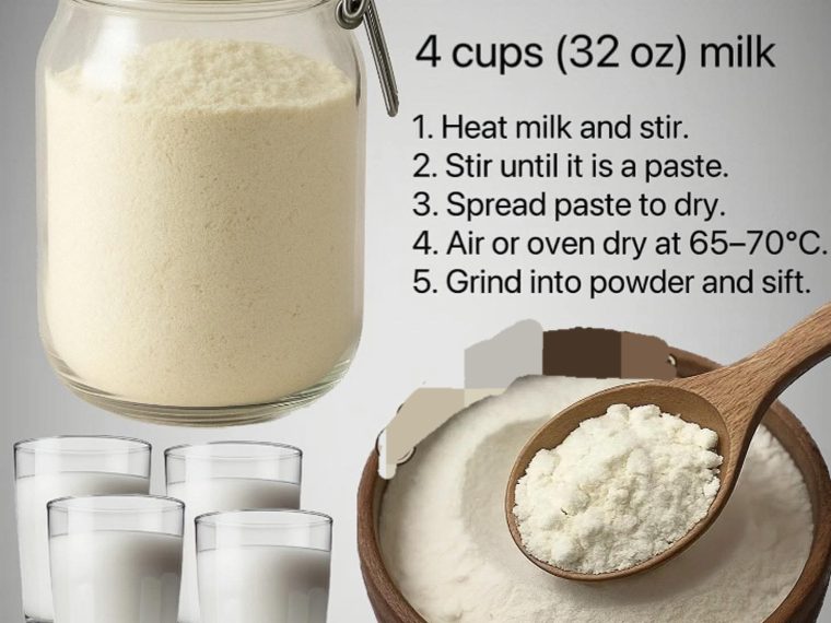 - Add 1/4 cup of powdered milk to 1 cup of warm water and stir well.