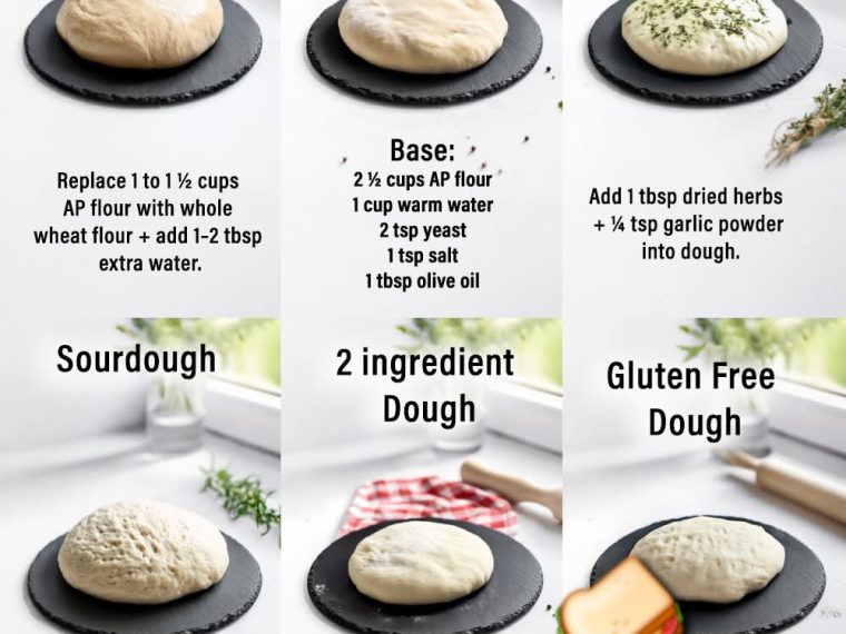Replace yeast with ½ cup active sourdough starter + rise 4–6 hours.