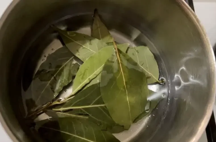 - In a saucepan, boil 15 bay leaves and 10 cloves in a cup of water .