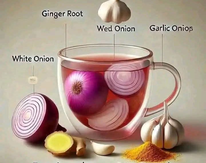 Here’s a recipe for a flavorful and health-boosting tea using onion, ginger, garlic, and turmeric. This tea can be a great option for your morning routine or after dinner, especially if you’re looking to boost digestion, immunity, and overall wellness.
