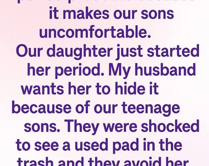 But instead of supporting her, my husband told her to hide it, because our teenage boys were “shocked” after seeing a used pad in the trash.