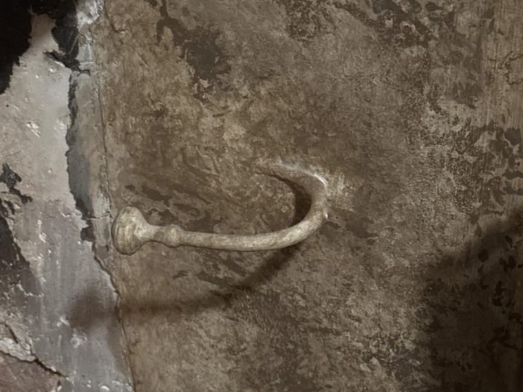 They are small, curved metal hooks placed in the sides of old fire-places. People either overlook these hooks or misunderstand them. They serve no decorative purpose, and no one installed them to hold tools. However, people once used them actively and intelligently in the early days of American hearths. They held curtain screens of ember protection.