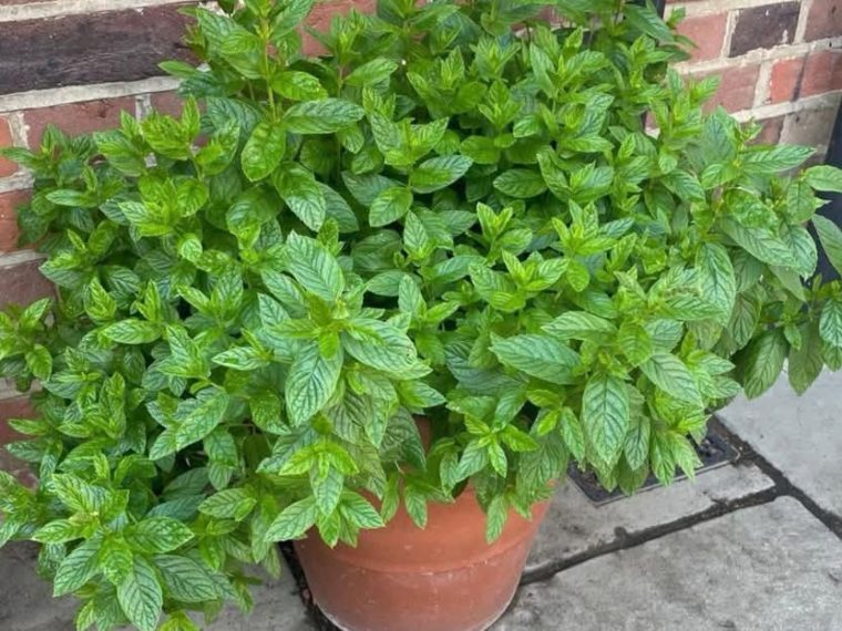 A peppermint plant can elevate the appearance of your entryway with its lush green foliage and attractive look.