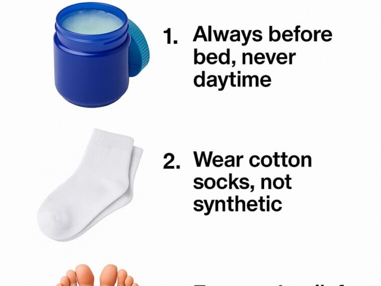 For the best results, apply VapoRub to your feet at night before going to bed. This timing allows the ointment to work uninterrupted while you rest. The body’s natural repair processes during sleep can enhance the soothing properties of VapoRub, leading to more significant relief by morning.